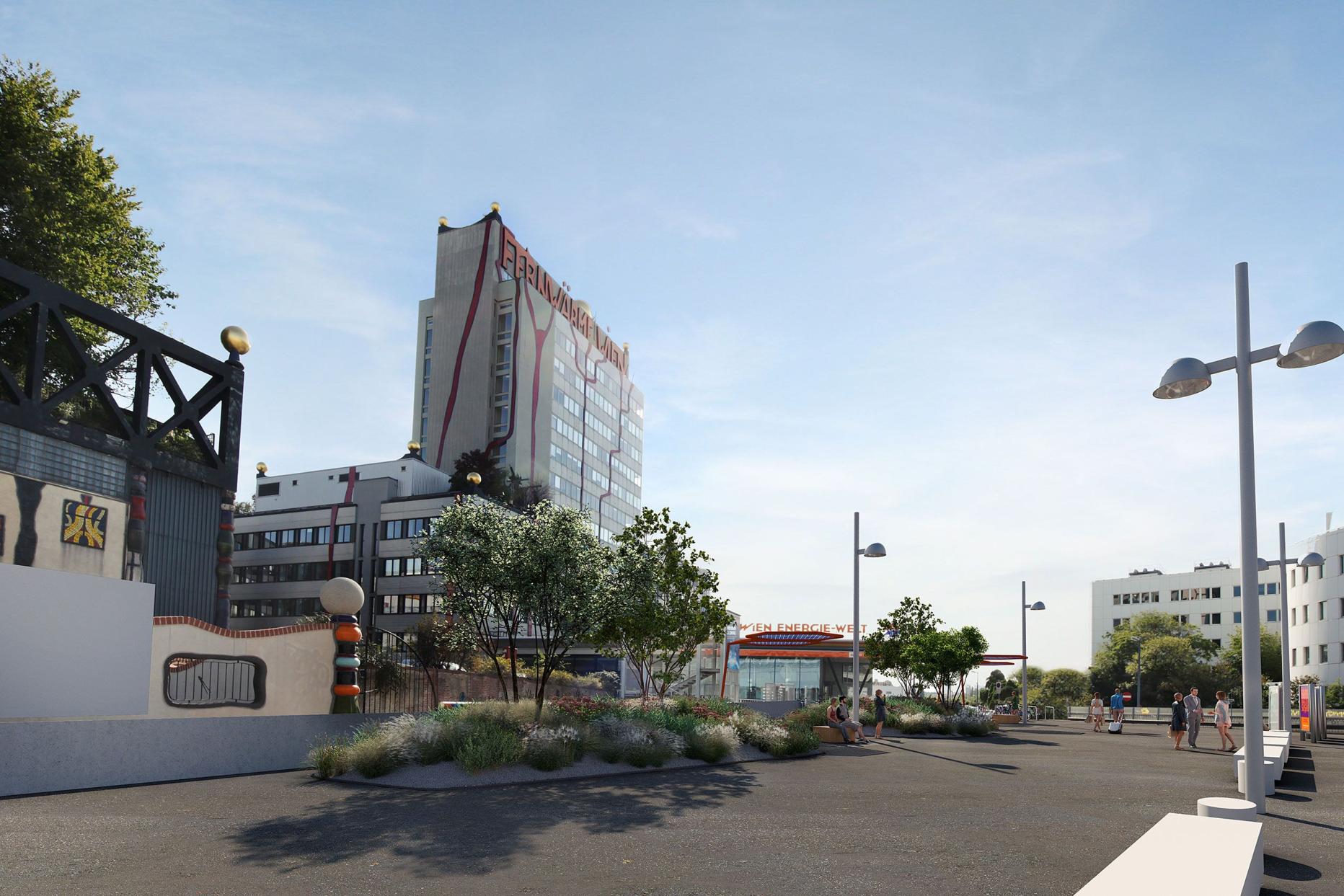 Weniger Hitze in der Stadt: Auf dem Platz vor der Station werden 26 Bäume gepflanzt, Sprühnebel soll für Abkühlung sorgen.