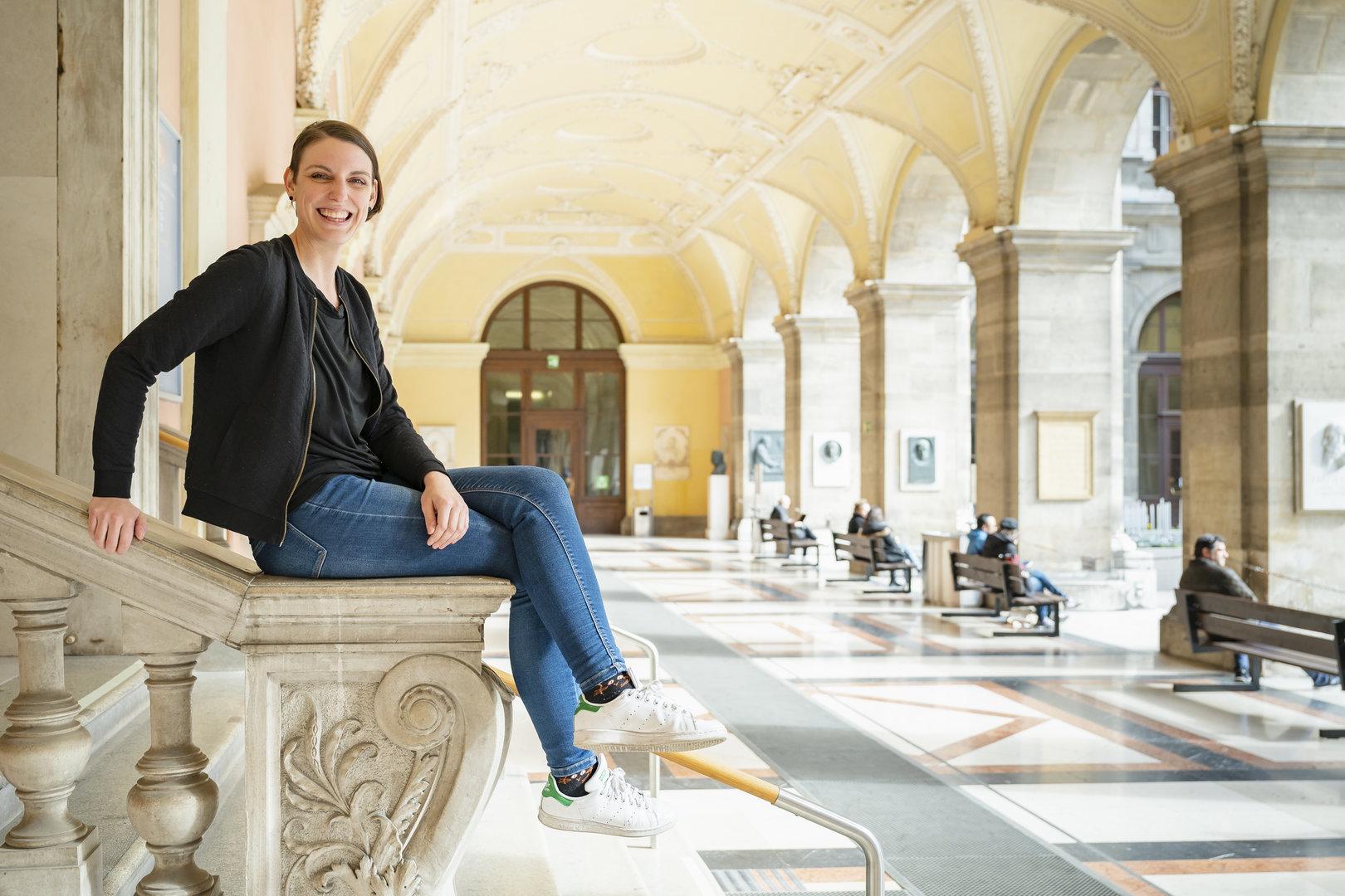 Viktoria Spielmann im Arkadenhof der Universität Wien. Sie zog von Tirol in die Hauptstadt und wurde dort ÖH-Chefin.