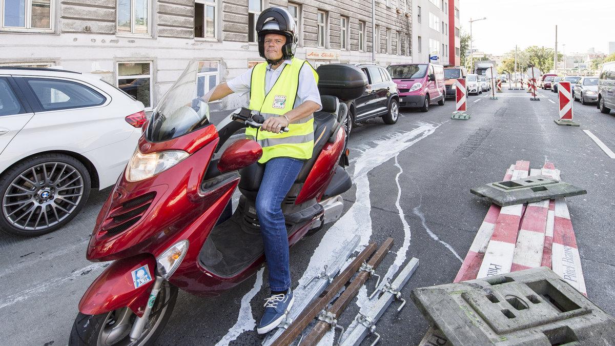 Nach massiven Protesten wurde heuer die Position des Baustellen-Koordinators geschaffen. Und Peter Lenz nimmt seinen Job ernst: Mit dem Motorroller kurvt er durch Wien und kontrolliert. Bei 387 verkehrsrelevanten Baulosen hat er jede Menge zu tun.
