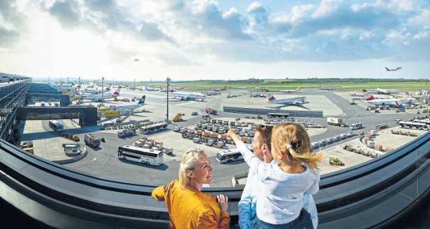 Von der Besucherterrasse aus hat man das ganze Flughafengeschehen im Blick.