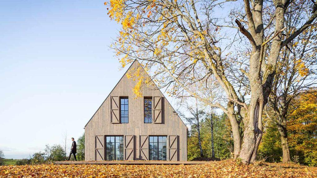 Die Vision war ein archetypisches Landhaus, das zeitlos und keinen Trends unterworfen sei. „Das Haus fügt sich unaufgeregt und respektvoll in die Umgebung ein, seine Form scheint hier voll und ganz zuhause zu sein“, sagen die federführenden Architekten über das Projekt. „Der kompakte, rechteckige Baukörper mit der hohen Dachneigung ist ein Triumph des Einfachen und Bescheidenen.“