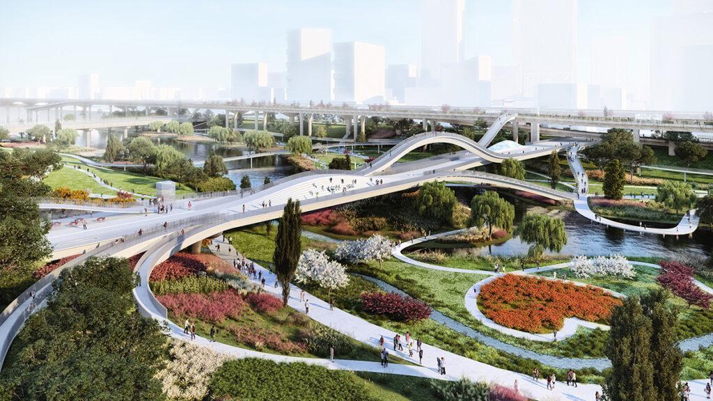 Seoul wird bald um eine spektakuläre Erholungszone reicher. „The Weaves“, entworfen vom niederländischen Büro MVRDV, setzt eine verspielte, grüne Freizeitlandschaft ans Flussufer im Tancheon Tal – und verwebt damit Natur und Metropole auf innovative Art.
