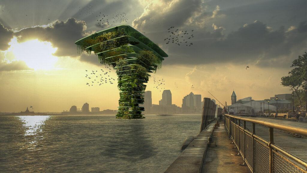 In immer dichteren Städten bleiben Flora und Fauna auf der Strecke. Das Büro Waterstudio will das Dilemma mit dem „Sea Tree“ lösen: Naturreservate auf schwimmenden Türmen sollen für grüne Stadterweiterung sorgen. Für Menschen unzugänglich – aber im Dienste ihrer Gesundheit und Zukunft.