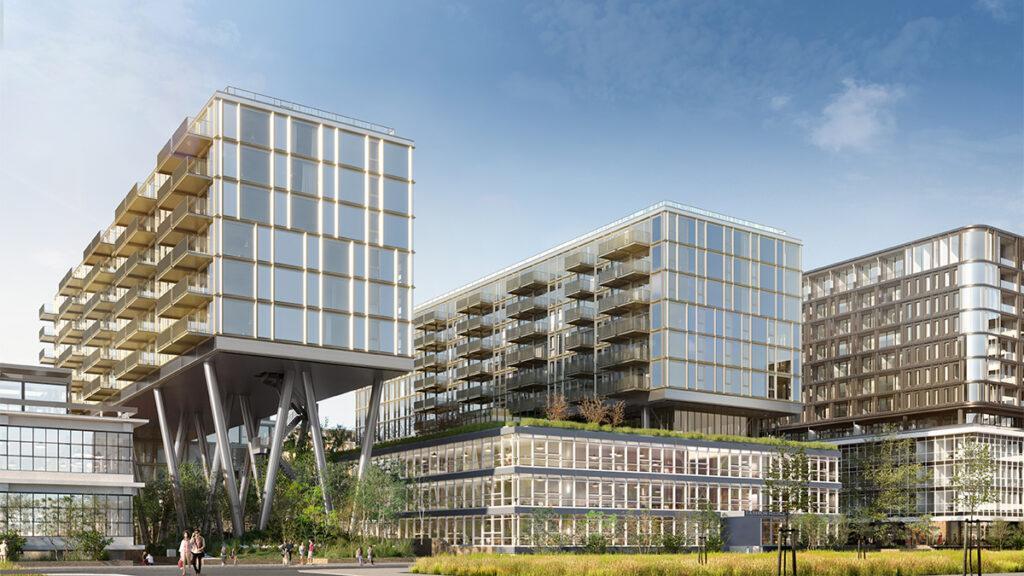 Neue Wohnungen, öffentliche Bereiche und Einrichtungen sind vorgesehen. Zusammen werden sie die oberirdisch verfügbare Fläche dieser Zone auf fast 90.000 Quadratmeter verdreifachen. Neben der städtebaulichen Planung ist KCAP auch für die Landschaftsgestaltung verantwortlich. Genauso, wie für die Architektur des neuen OKU House, das aufs „Fashion House“ gesetzt wird. In einer späteren Phase übernimmt das Team zudem die Renovierung des Bestandsgebäudes. Für Sanierung und Erweiterung von „Berghaus“ wurde das Studio MVSA Architects hinzugezogen.