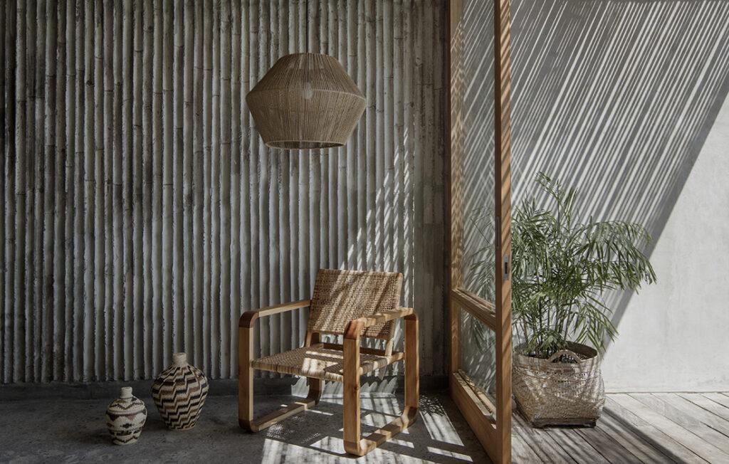 Glatte Betonmauern und Holz wechseln sich ab. Und oft kommt Bambus als Betonverschalung ins Spiel. Die Patina unterstreicht Textur und Form des Bambus und sorgt für Harmonie mit der natürlichen Umgebung.