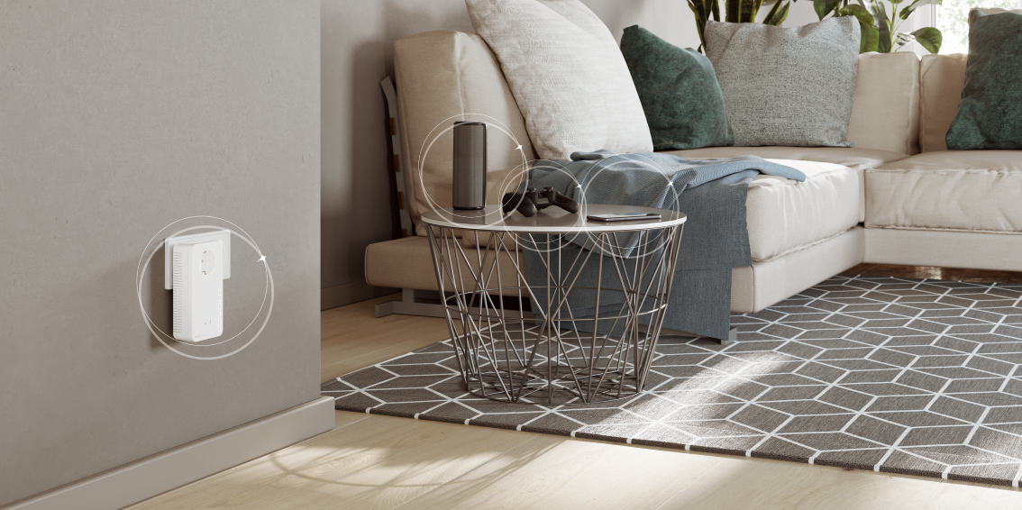 Mobile Endgeräte, etwa Smartphones oder Tablets, verbinden sich dank devolo Magic 2 WiFi next immer automatisch mit dem stärksten WLAN-Hotspot in der Nähe. Wer sich also durch die Wohnung bewegt, hat ununterbrochen gutes Internet – auch auf mehreren Geräten gleichzeitig.