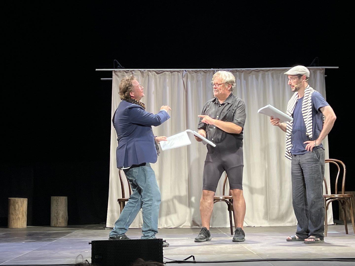 Hahnenkampf: Zeno Stanek, Ed. Hauswirth und Jérôme Junod in "Intendantenwechsel" als überhebliche Theaterdirektoren, die nichts von Frauenfußball halten