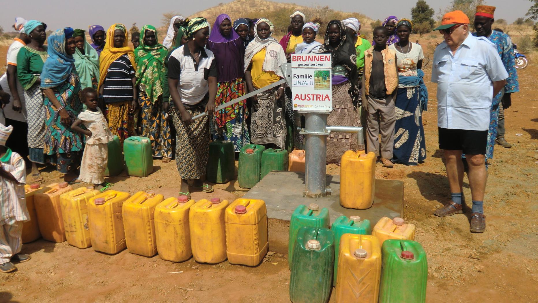 Er sagt, dass er schon 6 Brunnen und eine Schule