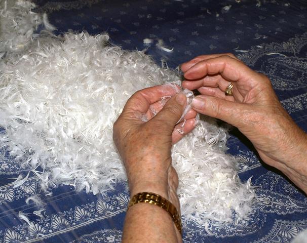 Federn∙schleißen Polster- und Tuchentfüllungen: Gut Ding will nicht nur Weile haben, sondern braucht auch geschickte Hände, um die Ganslfedern vom Kiel zu trennen. Wer’s probieren möchte und fleißig mithilft, wird mit einer Jause aus regionalen Schmankerln und Uhudler-Spezialitäten belohnt.