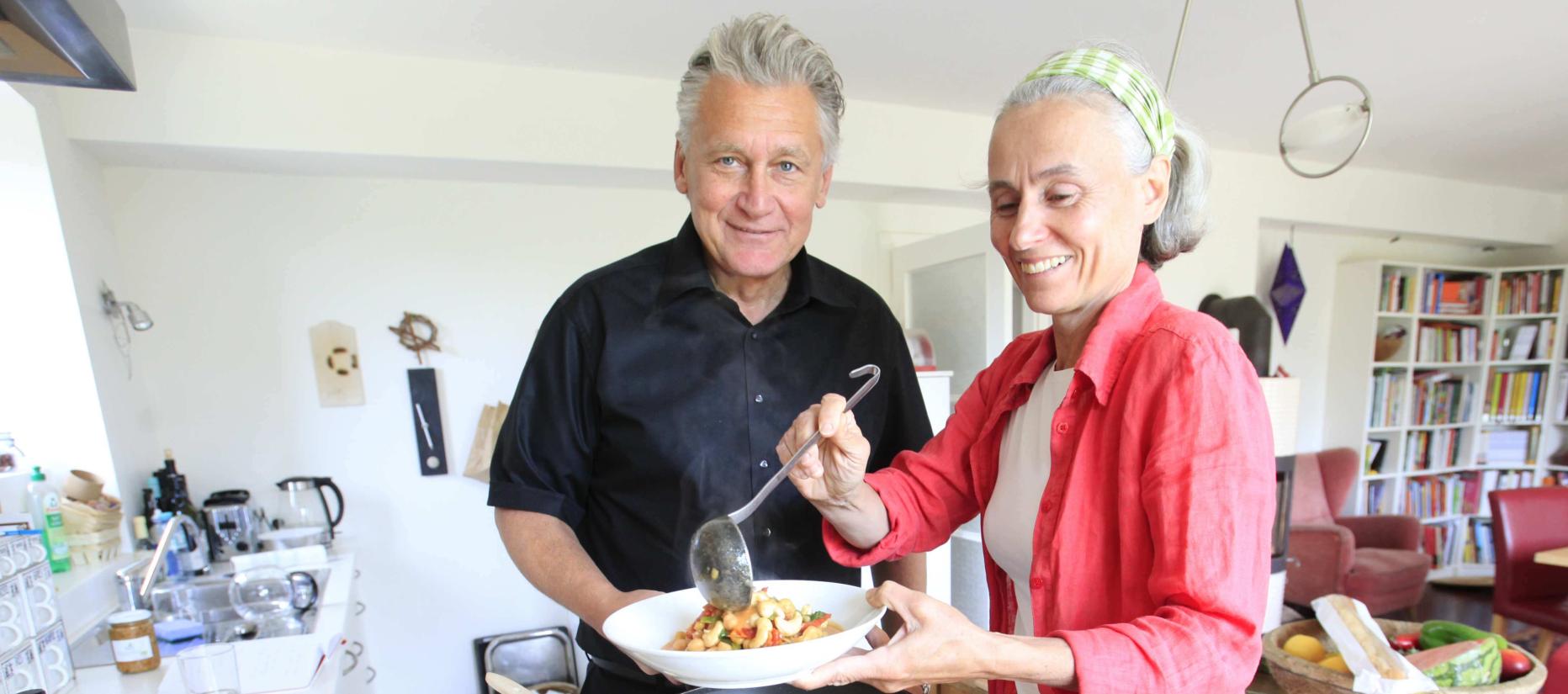 Ans Kochen. Seit seiner Kur in Indien verzichtet der 59-Jährige großteils auf tierische Produkte. Ohne missionarischen Anspruch, einfach, weil es ihm damit besser geht. "Es ist sättigend und man ist nach dem Essen nicht müde." Bekommt er bei einer Einladung allerdings ein Schnitzel serviert, lässt er es auch nicht stehen. "Ich möchte mir Genüsse nicht entgehen lassen." Sympathisch unkompliziert.