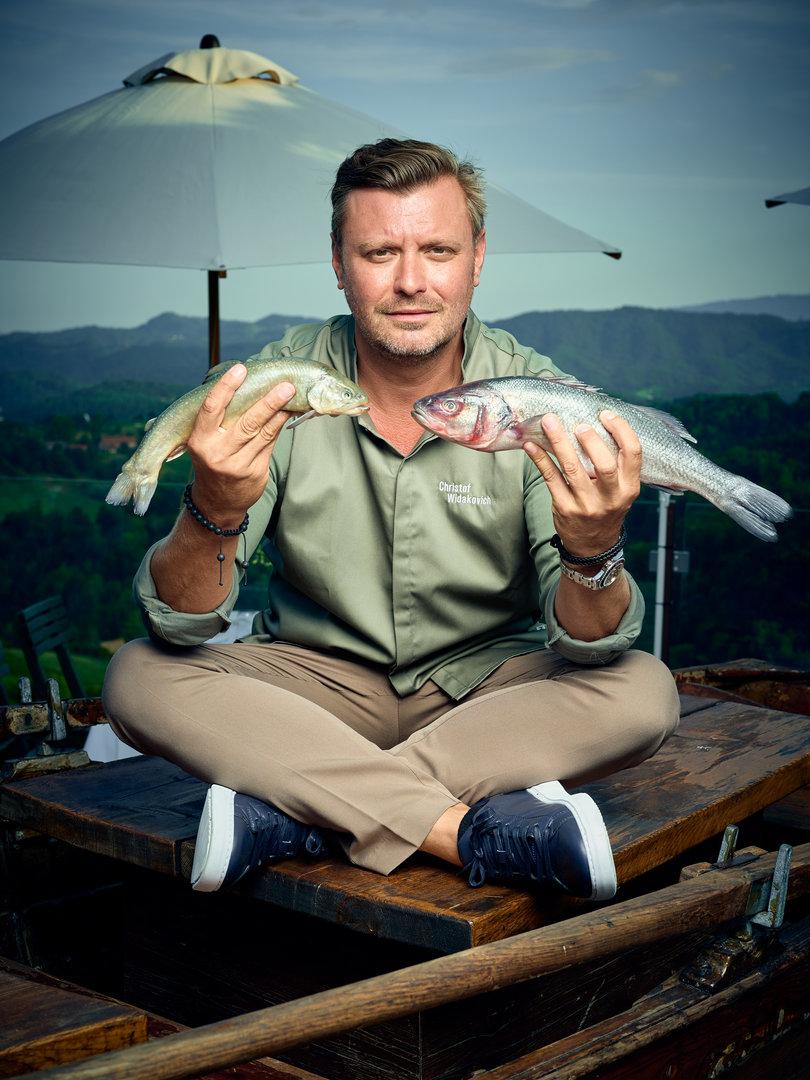 Steirischer Gebirgssaibling trifft auf Bio-Branzino aus Piran: Christof Widakovich definiert Regionalität nicht nach Ländergrenzen sondern per lokaler Nähe, beide Fische haben denselben ökologischen Fußabdruck