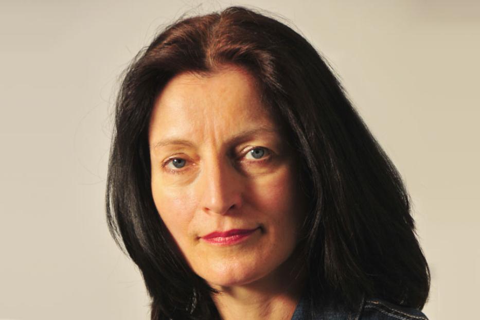 Eine lächelnde Frau mit dunklen Haaren und einem grünen Pullover blickt in die Kamera.