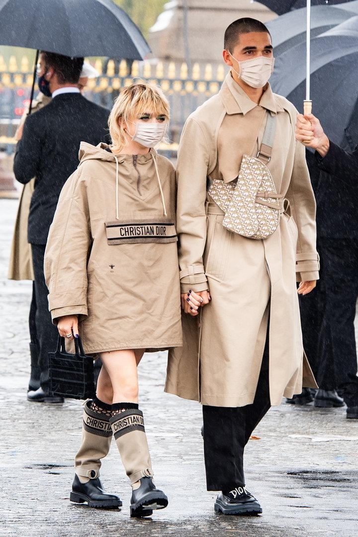 18 Labels, darunter große Modehäuser wie Chanel, Hermes oder Louis Vuitton, entschieden sich, ihre Kollektionen in physischer Form zu zeigen. Den Anfang machte die Marke Coperni am Dienstagmittag mit einer Show auf dem Dach des Tour Montparnasse. Unter freiem Himmel und mit limitierter Gästeliste sollte die Ansteckungsgefahr mit dem Coronavirus so gering wie möglich gehalten werden. Dafür mussten die Zuschauer jedoch teilweise im Regen sitzen.