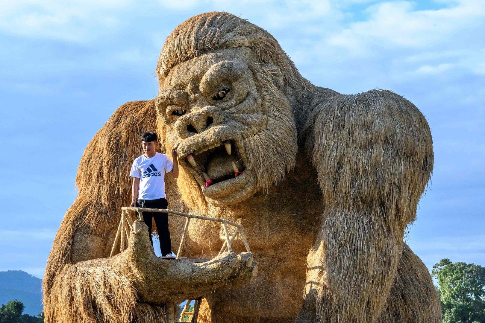 An den Ufern des Sees Huay Tueng Thao, nahe der nordthailändischen Stadt Chiang Mai, wurden larger-than-life-Skulpturen geformt - aus Reisstroh.