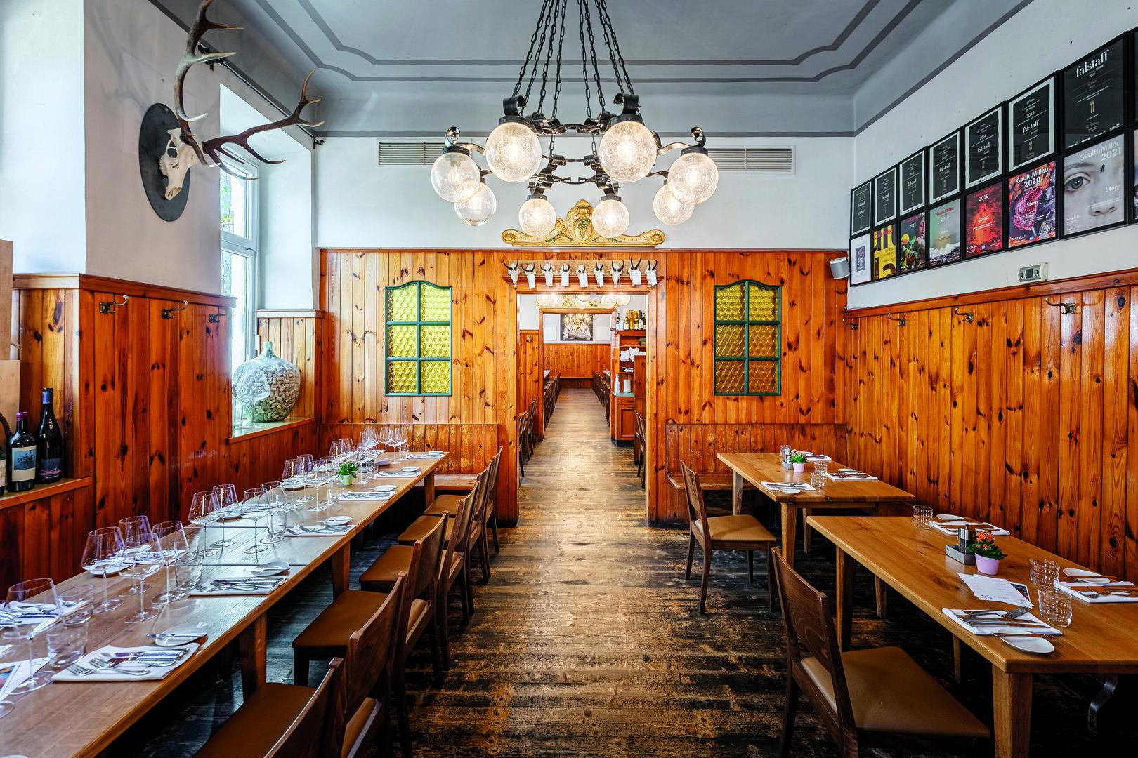 Anders, aber nicht minder gut. Im Gegenteil. Hagenhenrichs Küche ist mutig und handwerklich virtuos. Manches, wie die köstlichen Schnecken, steht immer noch auf der Karte. Neu sind etwa Chorizo vom Rehbock mit Erdäpfeln in Leindotteröl, gebratenes Kalbsbries auf geschmorten Orangen, Fasan-Wildschweinkäsekrainer mit Szechuan-Pfeffer und Bergkäse, Bergkasnocken mit Rückenfilet vom Blauflossenthunfisch. Besonders gewagt: das gebackene Hirn mit Kaisergranat-Bisque. Insgesamt grandios.