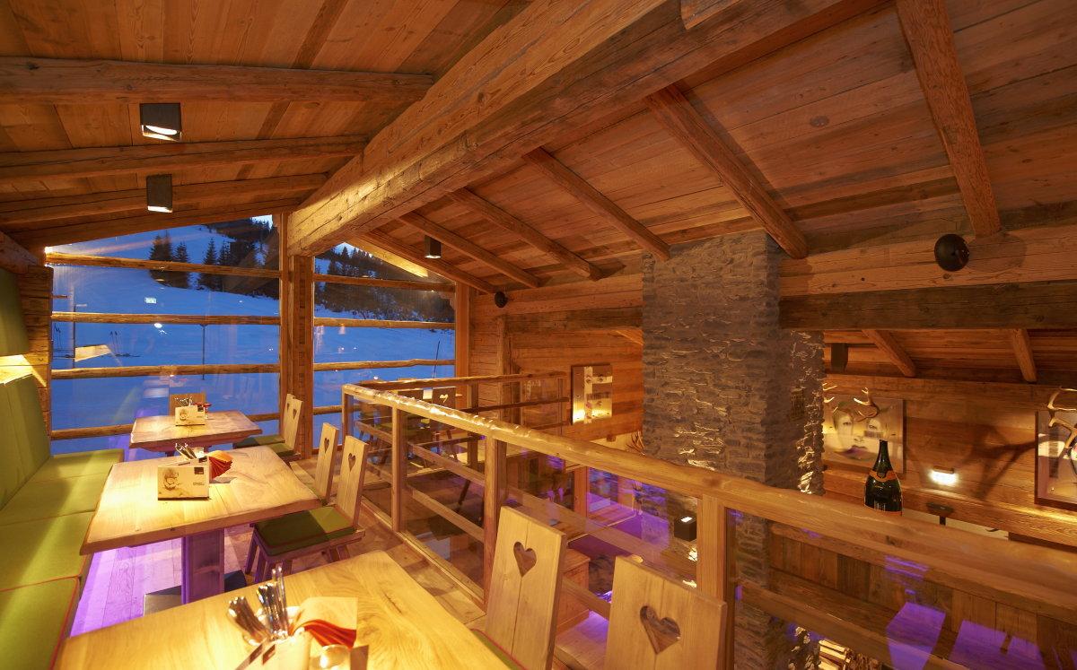 Junge, pompöse Designer-Almhütte mit riesiger Lounge, DJ und sogar eigener Alpin- Patisserie. Ganz viel Gourmet-Bling-Bling auf 1.520 Metern Höhe.
