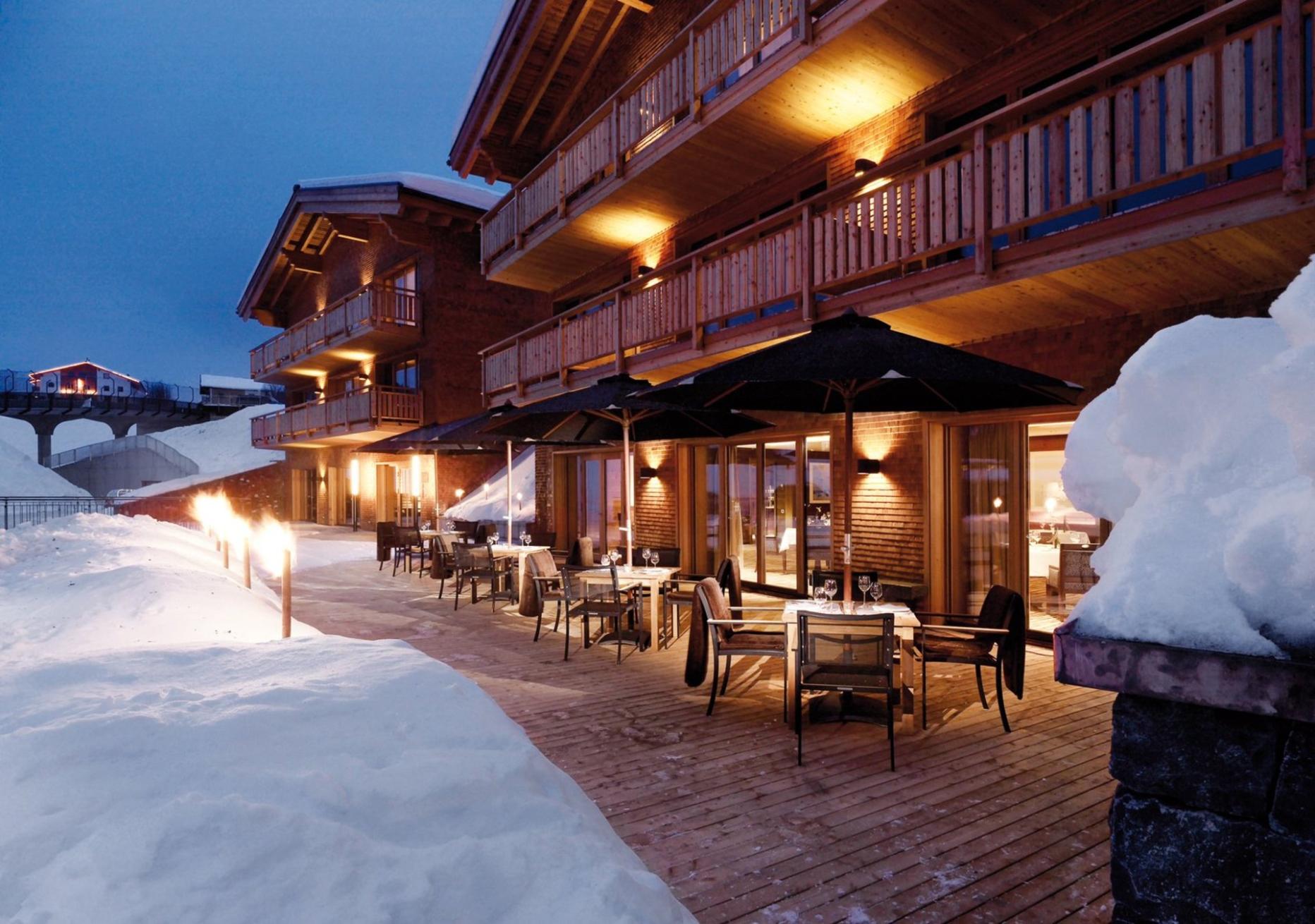 Das Luxus-Hotel in Lech ist über die Piste Nr. 200 nicht nur leicht zu erreichen, sondern zählt auch zu den besten und modernsten Restaurants mit „alpiner“ Küche im Lande. Skischuhe also ausziehen.