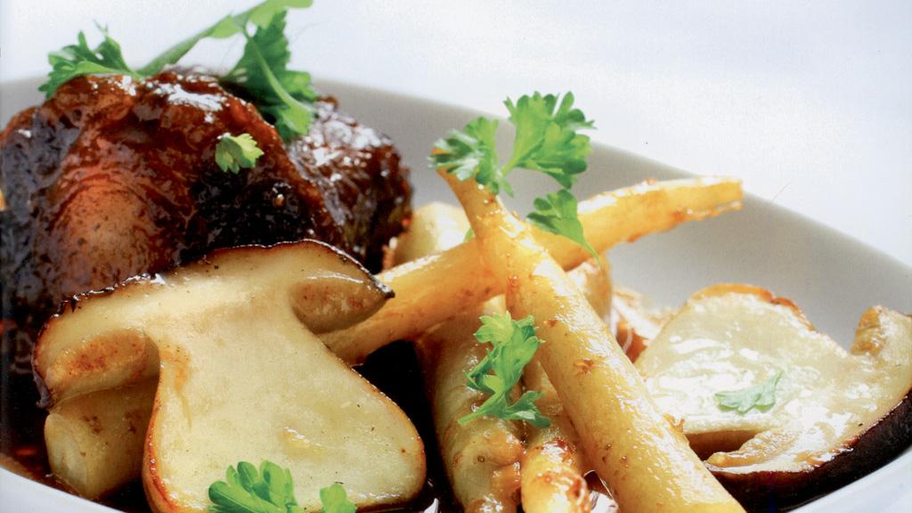 Geschmorter Ochsenschwanz mit Steinpilzen und Haferwurzeln