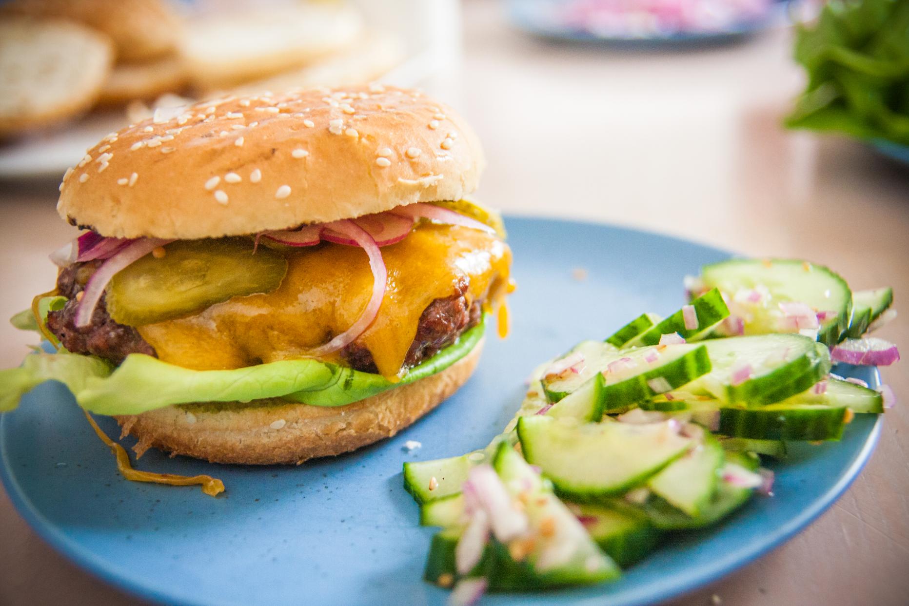Der Sommer ist da, die ersten Griller wurden schon längst angeheizt, aber was grillen, wenn man Familie und Freunden auch mal etwas anderes als Koteletts und Bratwürstl servieren will? Wir haben die "Weber's Burger" Rezeptsammlung zur Hand genommen und uns an einem klassischen Cheeseburger versucht. Dazu gab's ein Extra-Topping und Salat: