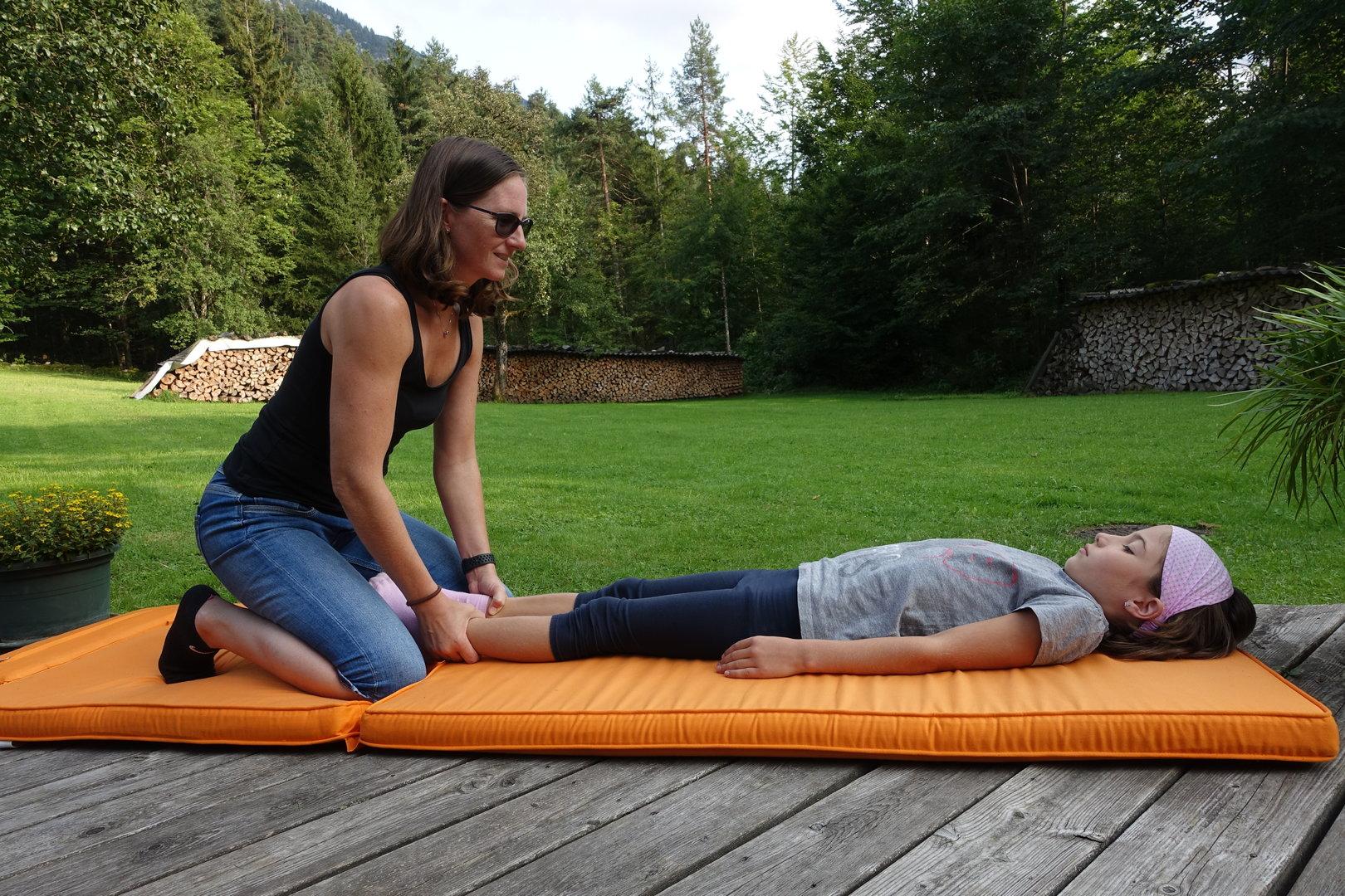 Anschließend sind vor allem die Eltern gefragt: Über einen Zeitraum von etwa einem Dreivierteljahr machen sie fünfmal pro Woche für je 15 Minuten Übungen mit ihrem Kind, die das Gehirn an neue Bewegungsmuster gewöhnen sollen. Schaukeln, Längs- und Querbewegungen oder sanfte Druckausübung sollen an Bewegungen im Mutterleib erinnern. Dabei wird Musik gehört, die beide Gehirnhälften stimulieren soll. Krisch: „In den ersten Wochen liegt das Kind und ein Elternteil macht sanfte Schüttelbewegungen, ähnlich den Bewegungen des ungeborenen Babys im Fruchtwasser.“