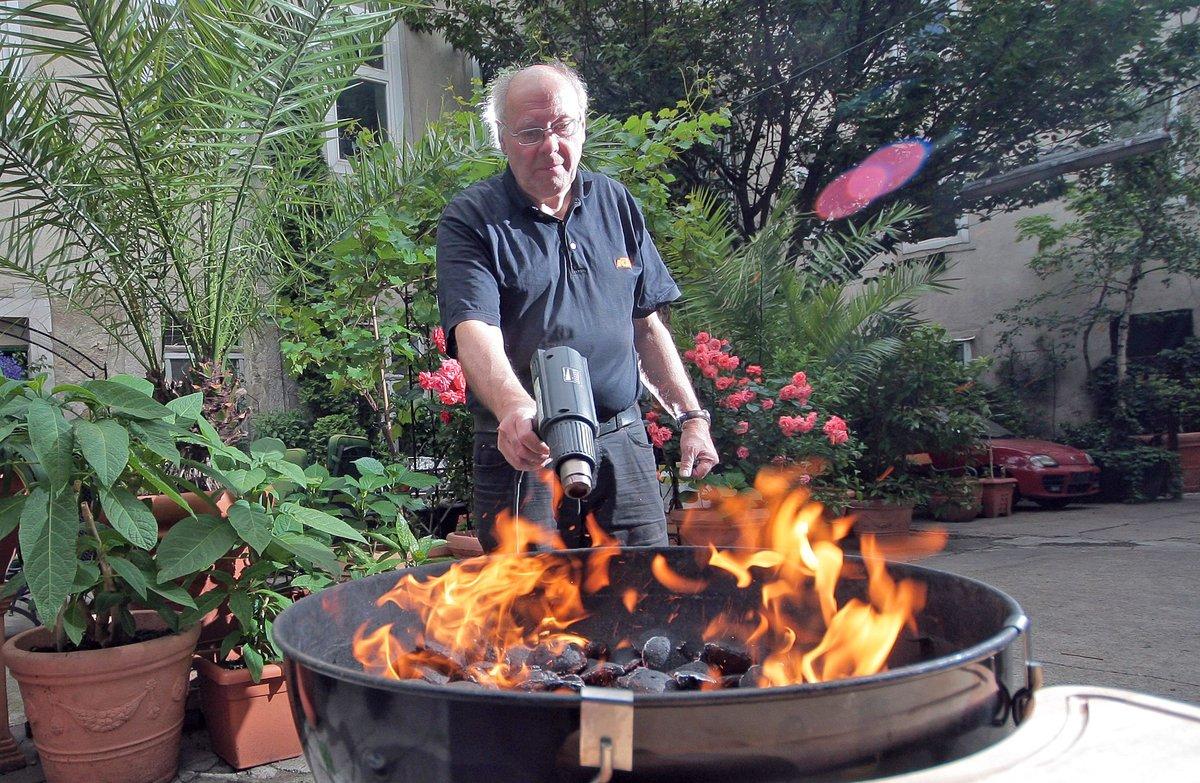 - Verzichten Sie auf einen Handkurbelföhn beim Anfeuern: Als Faustregel gilt: Briketts brauchen eine Stunde Vorbereitungszeit, dafür glühen sie vier Stunden lang – perfekt für ausgedehnte Barbecue-Sessions. Für Bruchkohle benötigt man 30 Minuten Vorbereitungszeit, diese ermöglichen dafür nur eine Stunde Grill-Vergnügen. "Ich empfehle nicht nur bei Briketts, sondern auch bei Bruchkohle einen Anzündkamin, diesen gibt es bereits um fünf Euro zu kaufen. Nachhaltig produzierte Anzünder wie Holzbündel mit Wachs eignen sich sehr gut", rät Grill-Weltmeister Christoph Gollenz. Eine zusätzliche Sauerstoffzufuhr mit Blasebalg oder Handkurbelföhn sei nicht nötig. Nach dem Einsatz bleibt Bruchkohle zwei Stunden heiß, Briketts sogar bis zu fünf Stunden. Grillen mit Holzkohle kann in geschlossenen Räumen übrigens lebensgefährlich sein. Wenn Holzkohle nicht vollständig verbrennt, kann Kohlenmonoxid entstehen.https://images.spunq.telekurier.at/46-62382428.jpg/143.243.558APA/ GEORG HOCHMUTHTHEMENBILD: GEFAHREN BEIM GRILLENAPA18558030-3 - 27052014 - WIEN - ÖSTERREICH: ZU APA 214 CI - THEMENBILD - Illustration zum Thema Grillen: Ein Mann bläst mit einem Föhn in die brennende Holzkohle, um das Feuer im Griller zu entfachen, fotografiert am 06. Juni 2009, in Wien. Laut Kuratorium für Verkehrssicherheit verletzten sich umgerechnet auf die gesamte Grillsaison 2013 (April bis September) 900 bis 1.000 Österreicher im Jahr spitalsreif, das sind rund fünf Verletzte pro Tag. (ARCHIVBILD). APA-FOTO: GEORG HOCHMUTH