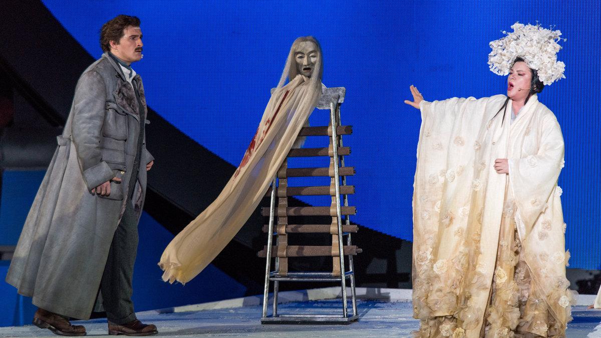 Am Anfang der ersten großen Premiere in Bregenz regnete es noch leicht, dann kam schwacher Wind auf – und die Produktion passte perfekt zum mittelmäßigen Wetter. Selbst am Ende, als es trocken war und auf der Bühne der Kitsch einzog.
