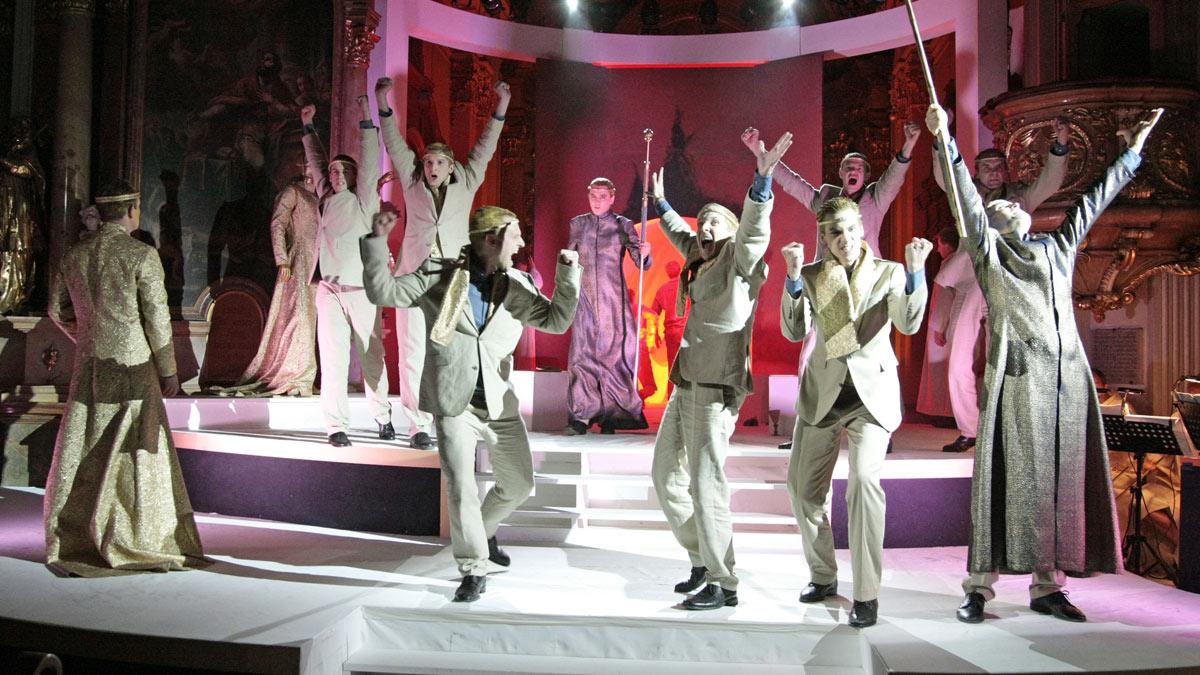 Es ist bereits der dritte Teil einer Trilogie von "Parables for Church Performance" aus der Feder des britischen Komponisten: "Für uns war klar, dass wir zu seinem 100. Geburtstag den finalen Part spielen", begründete Intendant Alexander Löffler die Rückkehr des Festivals zu den Anfangsjahren. Das Stück bedient sich des biblischen Gleichnisses vom verlorenen Sohn aus dem Lukas-Evangelium. "Wir halten uns streng an die englische Originalfassung. Die Musiker sind Bestandteil des Stücks und daher kostümiert", versprach Schüller.