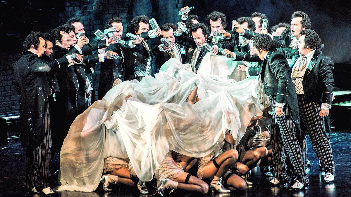 In dieser Produktion geht es um hunderte Themen, vor allem aber um Begierde, um Sehnsucht, um die Ausweitung der (sexuellen) Grenzen, um Exzess. Mann liebt Frau, Mann liebt Mann, Frau liebt Frau, aber vielleicht lieben die meisten doch nur sich selbst. Hoffmann wird hier zur Puppe Olympia, zum Automaten, da ja viele nur noch mechanisch ticken. Er verwandelt sich in Antonia und in Giulietta – und alle anderen (seine Frauen, seine Freunde, gut gesungen vom Prager Philharmonischen Chor) verwandeln sich in ihn. Die Suche nach Liebe ist die Suche nach sich selbst. Und die anderen sind Projektionsflächen.