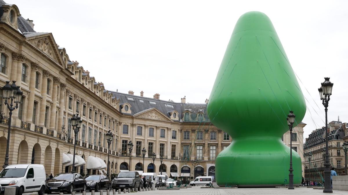 Der an ein Sexspielzeug erinnernde Skulptur auf dem Pariser Vendôme-Platz wurde die Luft ausgelassen.
