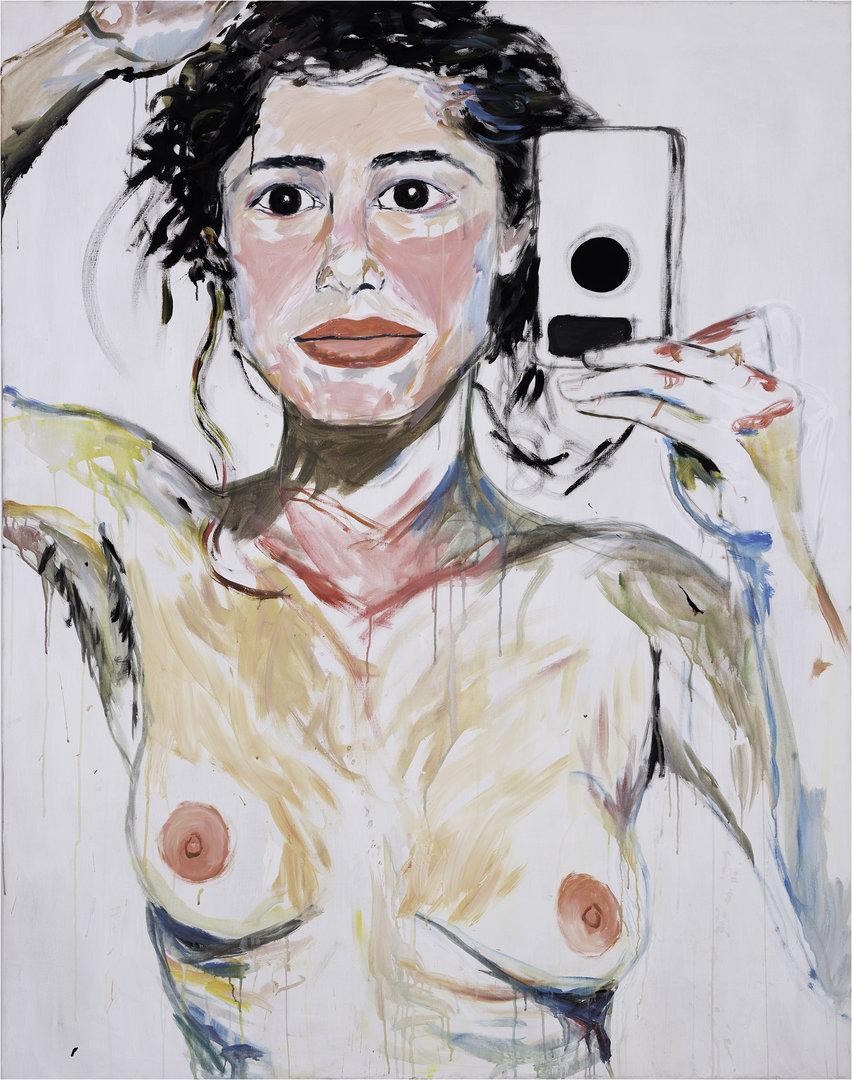 Der Selfie-Trend scheint etwa in der Kunst der 90er ebenso angelegt wie die kreative Kombination von Text und Bild, die uns heute in Form so genannter „Memes“ begegnet. Zwei Galerien in Wien führen das vor: Bei Wienerroither & Kohlbacher im Palais Schönborn-Batthyany breitet Elke Silvia Krystufek noch bis 9.11. einen Querschnitt durch ihr Werk seit den späten 80er Jahren aus; in der Galerie Steinek zeigt Matthias Herrmann bis 14.12. so genannte „Textpieces“, die zwischen 1996 und 1998 entstanden.