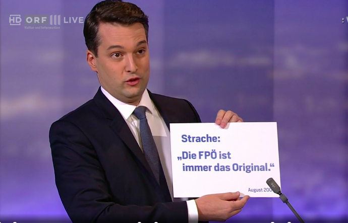 Nepp warf Strache jetzt auch noch per Haider-Taferl ein Zitat von 2008 vor die Füße: „Die FPÖ ist immer das Original.“ Strache sei „noch gar nicht auf der Welt gewesen“, als die Partei gegründet wurde, sagte der 38-Jährige zum 51-Jährigen. Diese Erkenntnis musste ein schwerer Schlag für Strache sein.