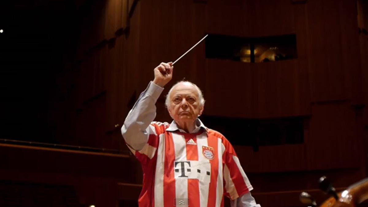 Der Chefdirigent der Münchner Philharmoniker, Maestro Lorin Maazel, steht im rot-weißen Trikot des FC Bayern München am Pult der Münchner Philharmonie und dirigiert sein Orchester: Ein Geiger trägt eine Fan-Kappe und der Chor FC Bayern-Fanschaals. Zu sehen ist das Ganze in einem nun veröffentlichten Video (siehe unten). Die Idee dahinter: Der Philharmonische Chor München und die Münchner Philharmoniker wollen die Spieler des FC Bayern beim Champions-League-Finale am 25. Mai in Wembley unterstützen.