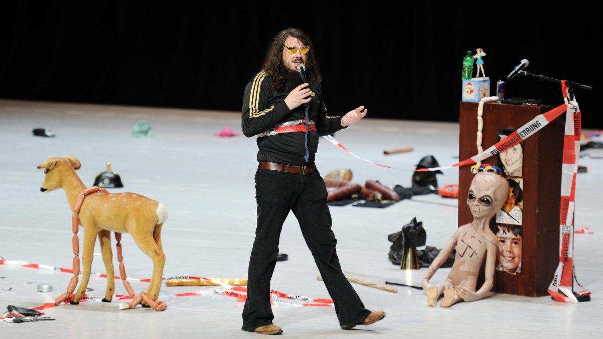Erst vor wenigen Wochen hat der deutsche Starkünstler Jonathan Meese einen Strafbefehl wegen eines öffentlich gezeigten Hitlergrußes erhalten. Am Mittwochabend hat der für seine aggressiven Performances bekannte Künstler bei den Mannheimer Schillertagen erneut massiv provoziert. Während seiner 165-minütigen Ein-Mann-Aufführung "Generaltanz den Erzschiller" zeigte der 1970 geborene Meese unaufhörlich den Hitlergruß, beschmierte eine Außerirdischen-Gummipuppe mit einem Hakenkreuz oder deutete mit dieser Oral-Sex an.