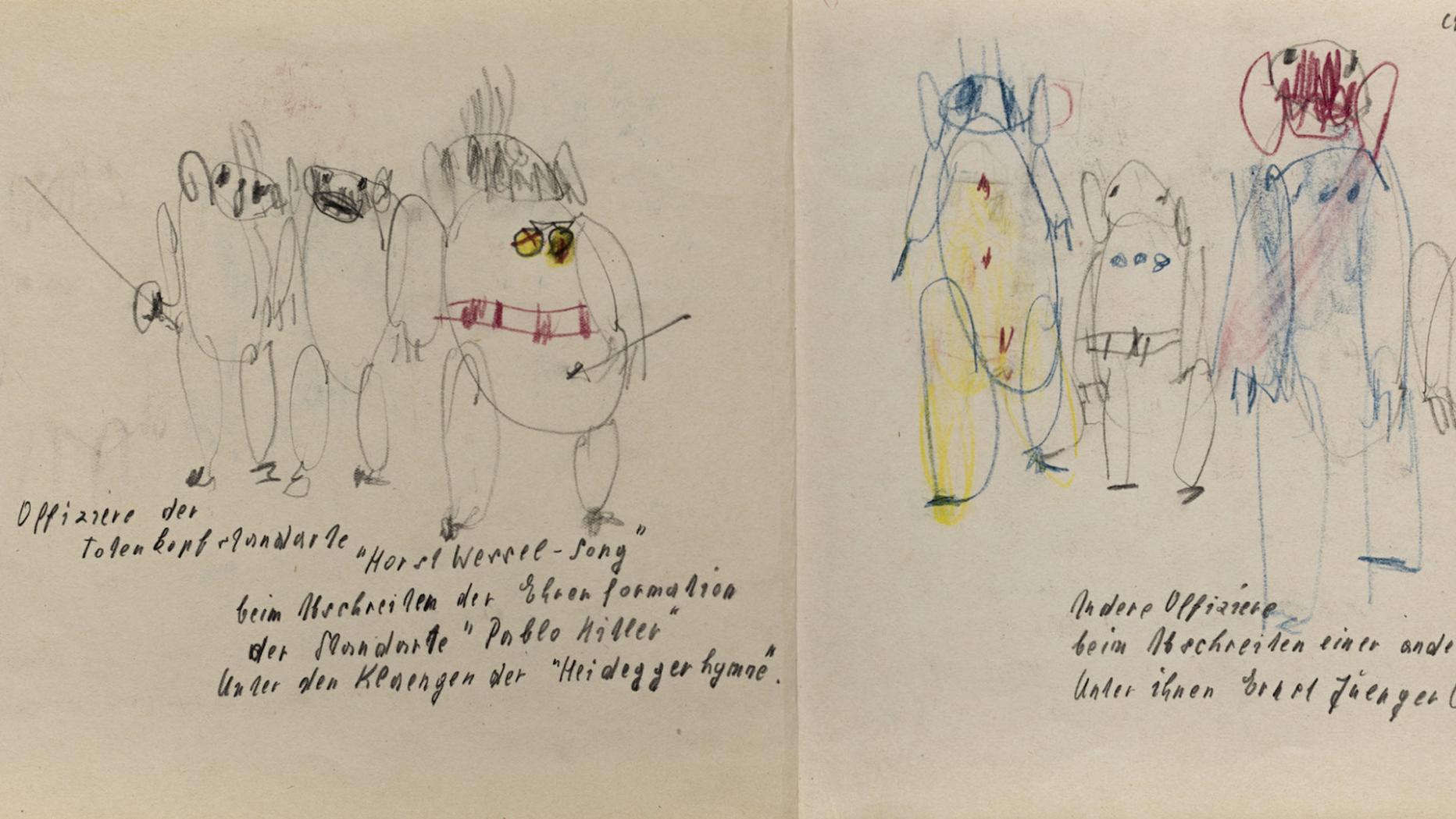 So gesehen hätten Mikl die Rezensionen, die in den 1960er Jahren in der Tagespresse erschienen, egal sein können. Waren sie aber nicht. Der Künstler sammelte Zeitungsausschnitte, kopierte sie, zeichnete darauf – und stellte sie 1964 mit einer Serie von Aquarellen aus: Kritikerpäpste der Zeit, darunter Johann Muschik ( KURIER) oder Kristian Sotriffer (Die Presse) erschienen da als verzerrte Tierwesen dargestellt. Schon zuvor hatte Mikl die "Journalistenfresserin Hawranek" erfunden, die zum Kristallisationspunkt seines Grants wurde: Eigene Ausstellungen und Künstlerbücher waren der Figur gewidmet. Für Mikl war es ein Weg, das Satirische und Politische von der "reinen" Malerei fernzuhalten.