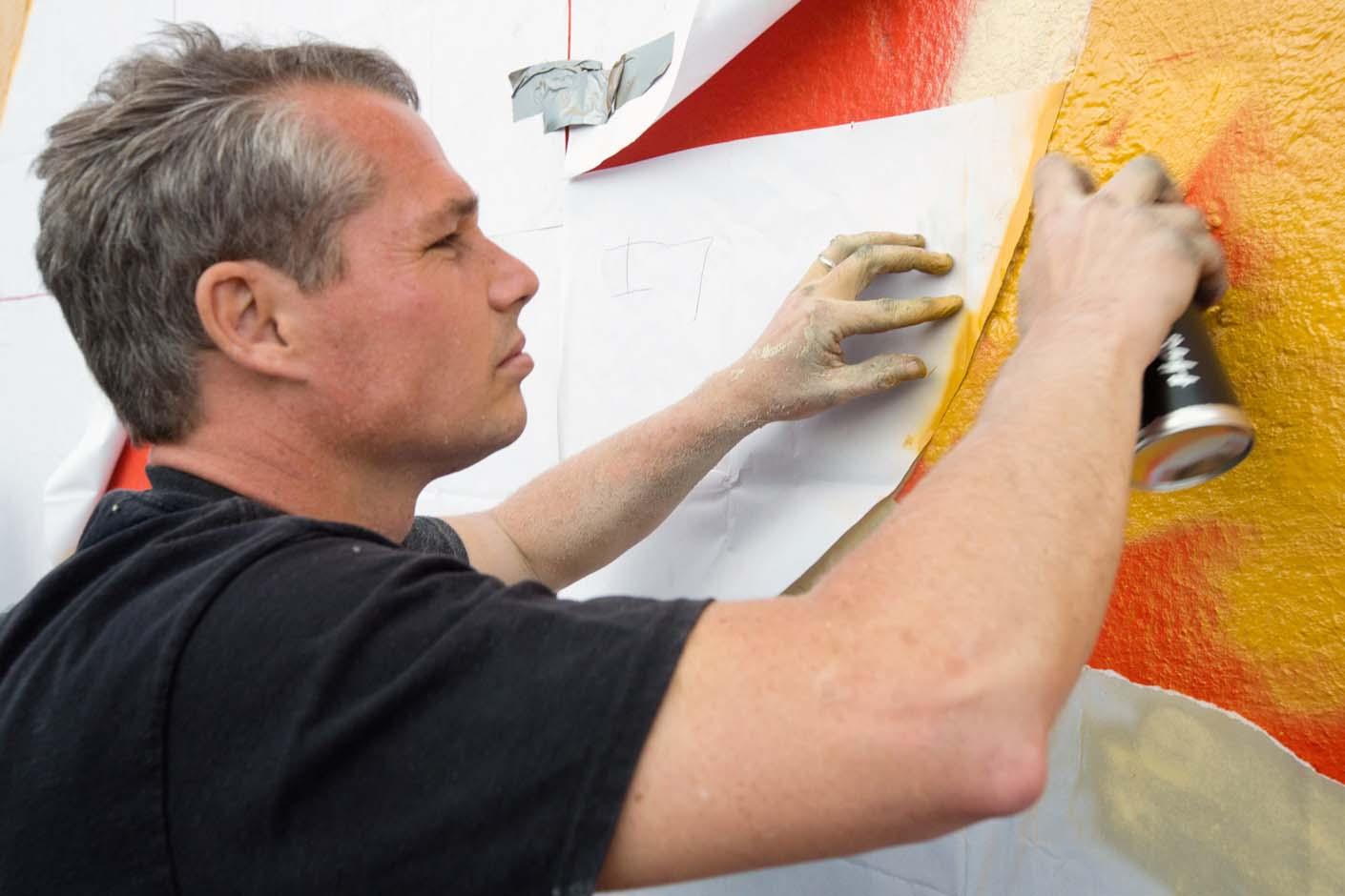 Der bekannte Street Art-Künstler Shepard Fairey bemalte in den vergangenen Tagen die Wand der Ankerbrotfabrik.