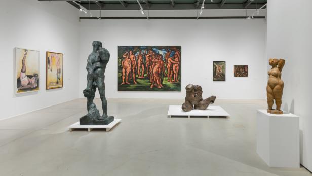 Eine fast theatralische Szenerie mit nackten Körpern: mit Werken von Adolf Frohner (links), Alfred Hrdlicka, Fritz Martinz („Großer Liebesgarten“), Gerda Fassel und Rudolf Schwaiger („Ilsebill“)