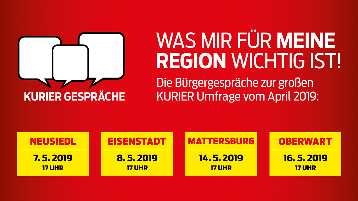 Seien Sie dabei – bei den KURIER Burgenland-Gesprächen in Neusiedl, Eisenstadt, Mattersburg und Oberwart