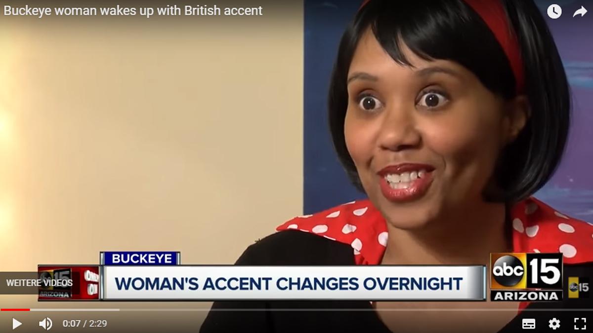 Michelle Myer aus dem US-Bundesstaat Arizona erzählte in einem Interview mit KNXV-TV, dass sie in der Vergangenheit immer wieder mit extremen Kopfschmerzen ins Bett gegangen und danach mit einem fremden Akzent aufgewacht ist. Beispielsweise habe sie dann für rund zwei Wochen in einem australischen oder irischen Akzent gesprochen, der dann wieder verschwunden ist. Der britische Akzent aber habe sich zwei Jahre lange gehalten, so die 45-Jährige. Wenn sie spricht, würde das nun viele Menschen an das britische Kindermädchen Mary Poppins erinnern.