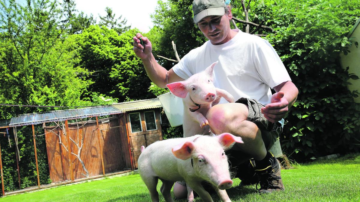 "Es ist ein Glück mit den Schweinen. Die sind nie satt", sagt Lang und lockt die grunzenden Eleven über die Wiese. Am 27. Juni wird das Jungdamenkomitee so weit gesellschaftsfähig sein, dass sich Kammersänger Wolfgang Bankl als reicher Schweinezüchter voll und ganz auf "Ja, das Schreiben und das Lesen" konzentrieren kann. Bis dahin wird auf Langs Wiese noch viel gefuttert, geraucht und gelacht. Und den Tauben im Vorbeigehen die Voliere für einen Freiflug geöffnet.
