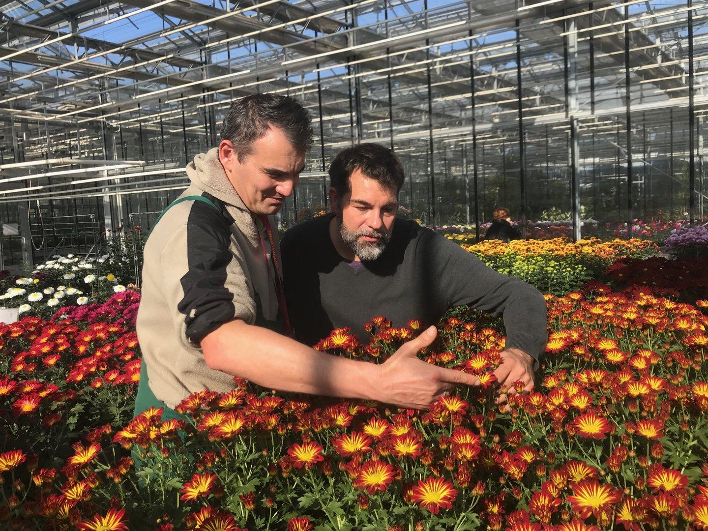 Leitner steht im riesigen modernen Glashaus inmitten eines Blumenmeeres, als er leidenschaftlich wird: „ Chrysanthemen haben so viele verschiedene Blütenformen. Viele Menschen wissen gar nicht, dass das alles Chrysanthemen sind, und verwechseln sie mit Dahlien.“ Kein Wunder, beide gehören zu den Asteraceaen (Korbblütler), wie Margeriten und Astern. Auch wenn sich alle ähnlich sehen, gibt es einen wesentlichen Unterschied: Chrysanthemen sind nicht winterhart – „leider“, fügt Leitner hinzu. An dieser Stelle rebelliert eine Besucherin, sie habe doch seit Jahren eine im Beet hocken, der Experte sagt sanft, das sei wohl eine Aster. In warmen Teilen Asiens, von wo die Pflanze mit dem griechischen Namen kommt, überlebt sie durchaus in Gärten, aber dort sind erstens die Winter milder und zweitens ihr Image mehr Heilmittel als Totenkraut. Bei uns sterben die meisten Chrysanthemen beim ersten strengen Frost, manche Sorten beim zweiten oder dritten. Einen ganzen kalten Winter überleben nur Staudenchrysanthemen.