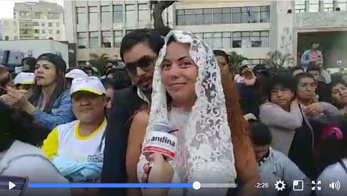 Sie sei einfach nachts aufgewacht und habe zu ihrem Freund gesagt, lass uns dahin gehen und uns vom Papst trauen lassen, sagte Estrada der Agentur Andina. Offenbar hatte sich das peruanisch-kolumbianische Paar von einer Blitzhochzeit im Papstflugzeug kurz zuvor inspirieren lassen. Die Flugbegleiter Paula Podest (39) und Carlos Ciuffardi (41), seit acht Jahren zivil verheiratet, wurden vom Papst während des Fluges getraut. Die nötigen Nachweise für die zivile Heirat waren vorhanden, ein mitreisender Kardinal stellte das Dokument über die kirchliche Eheschließung aus. Als Trauzeuge fungierte der päpstliche Reisemarschall Rueda Beltz.