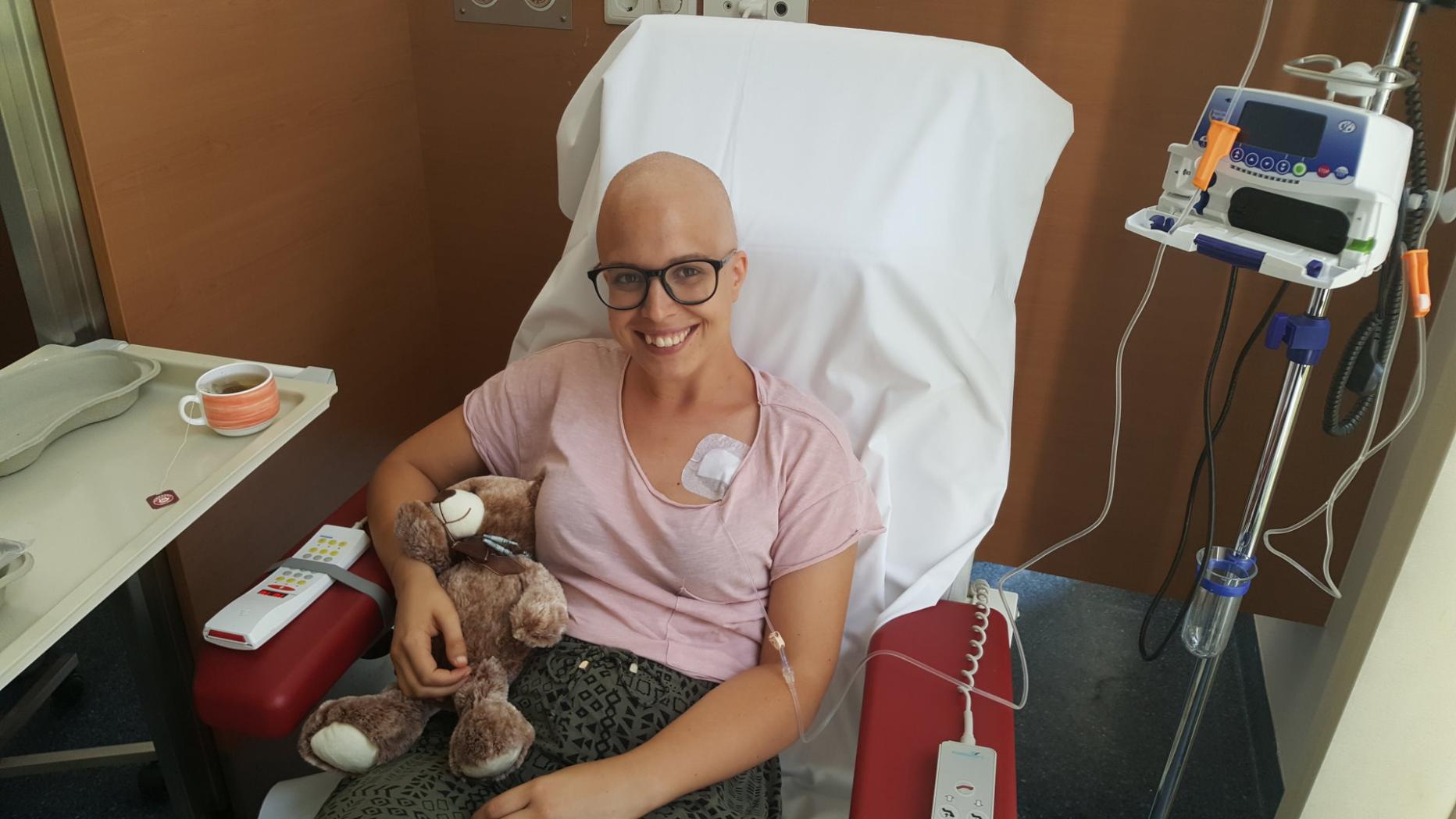 Zusammen mit einem braunen Teddybären sitzt Julia in einem großen, gepolsterten Krankenhaussessel. Durch einen dünnen Schlauch fließt transparente Flüssigkeit in ihren Brustkorb. Julias Kopf ist kahl – sie lächelt. Es sind Bilder wie diese, die die 29-Jährige in den vergangenen Monaten auf der Fotoplattform Instagram geteilt hat. Dort dokumentiert sie ihr Leben mit Brustkrebs.