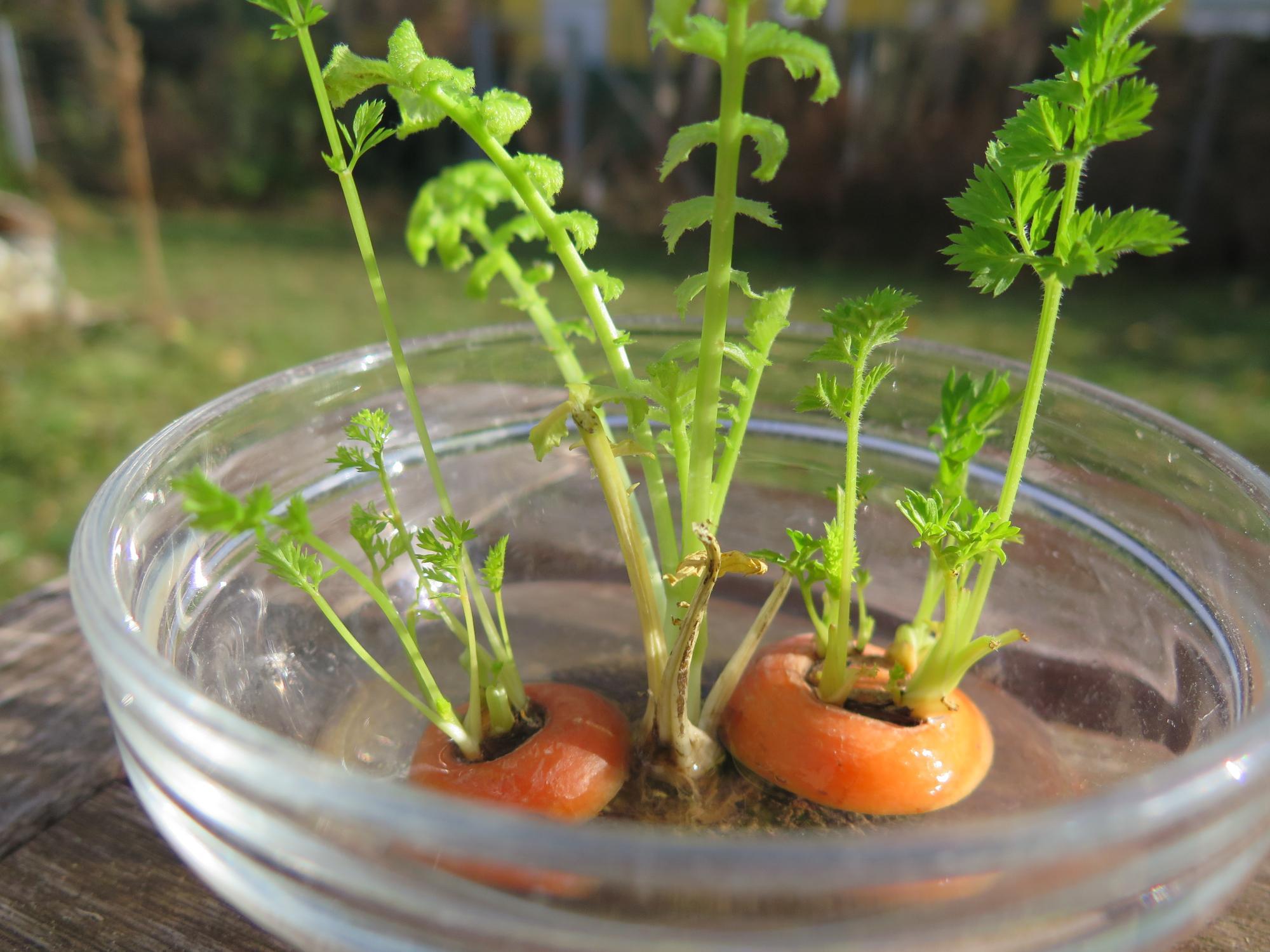 „Regrow“ bedeutet ein zweites Leben für die Karotte, sie grünt bei uns auch im Winter.