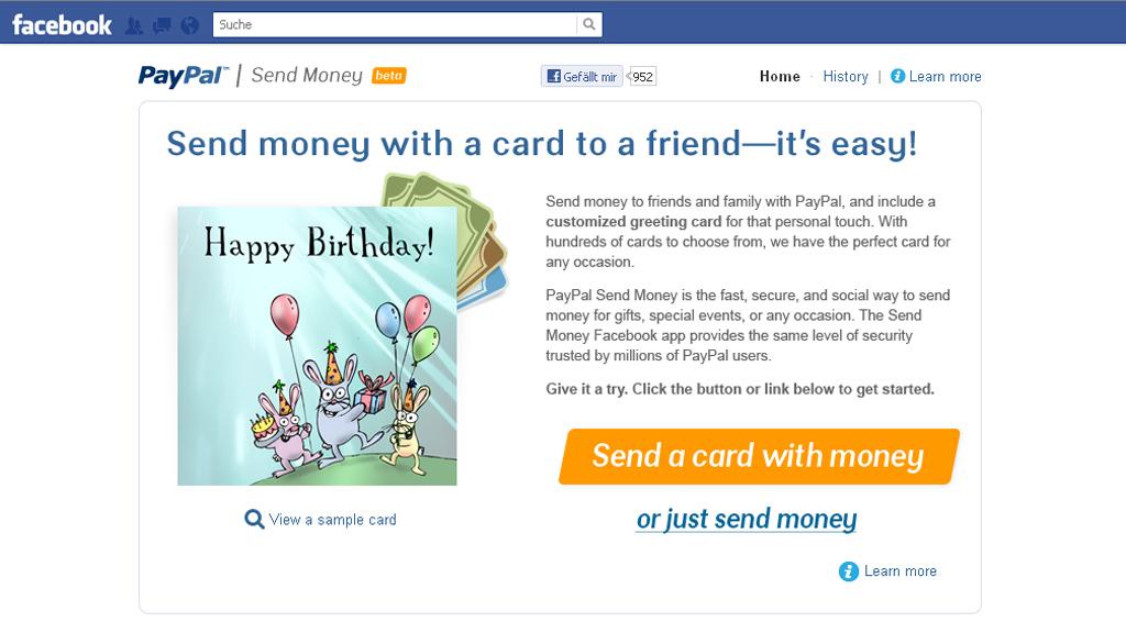 Geld-Grüße mit PayPal-App auf Facebook