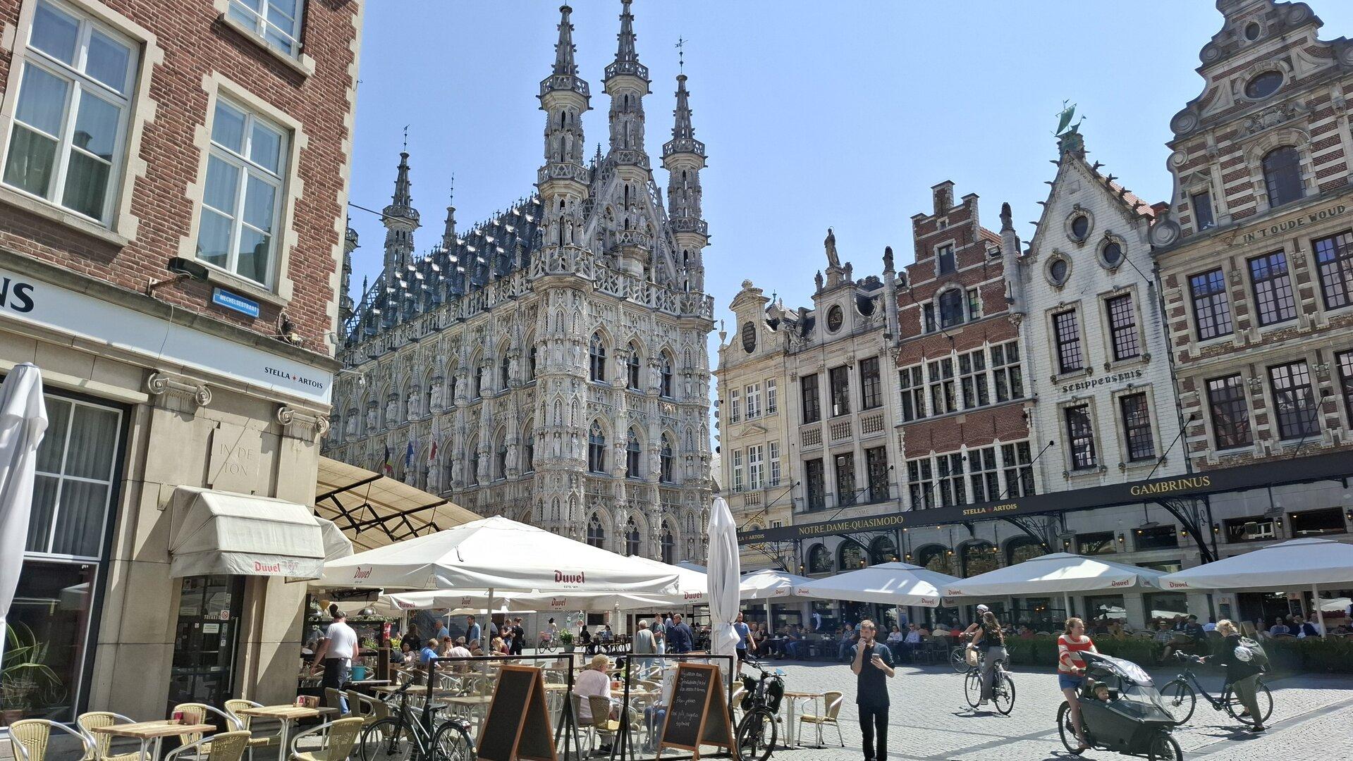 Ob Backsteingotik, flämische Renaissance, Jugendstil oder modern: Flandern bietet architektonisch für jeden Geschmack etwas. Der mittelalterliche Stadtkern von Brügge ist zwar berühmt, der Tipp des Autors ist aber Löwen: Eine quirlige Studentenstadt mit hübschen Fassaden und quirliger Lokalszene. Ein Herzstück der Innenstadt ist das spätgotische Stadthuis (das Rathaus, hier in der Bildmitte).