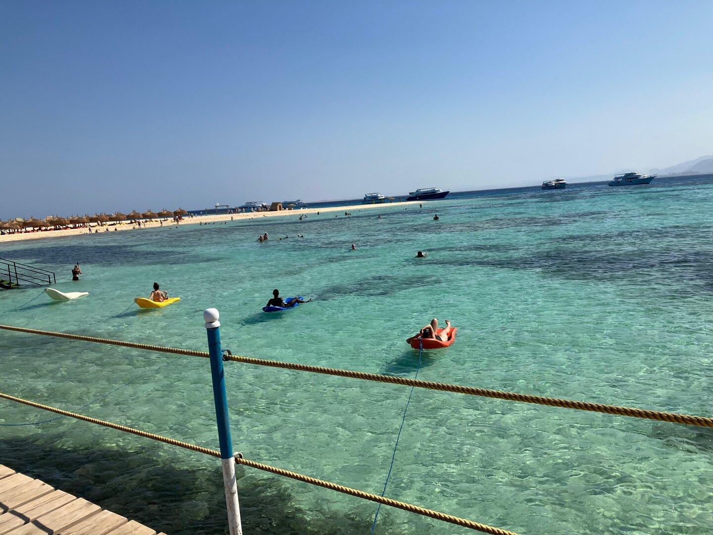 Lohnend ist auch ein Ausflug nach Bianca Island. Mit dem Glasbodenboot geht es zu auf die reinste Postkarten-Idylle: weißer Sandstrand, glasklares türkises Wasser, himmelblaue Sonnensegel und Liegestühle. Auf Bianca Island gibt’s nicht nur die Schnorchel-Ausrüstung zu leihen. Auch ein Guide steht zur Verfügung, unter dessen fachkundiger Leitung man sich unter Wasser wohl behütet zwischen den kunterbunten Meeresbewohnern tummelt. Das faszinierende Unterwasserreich des Roten Meeres umfasst tausendzweihundert Fischarten und zweihundertfünfzig Korallenarten.