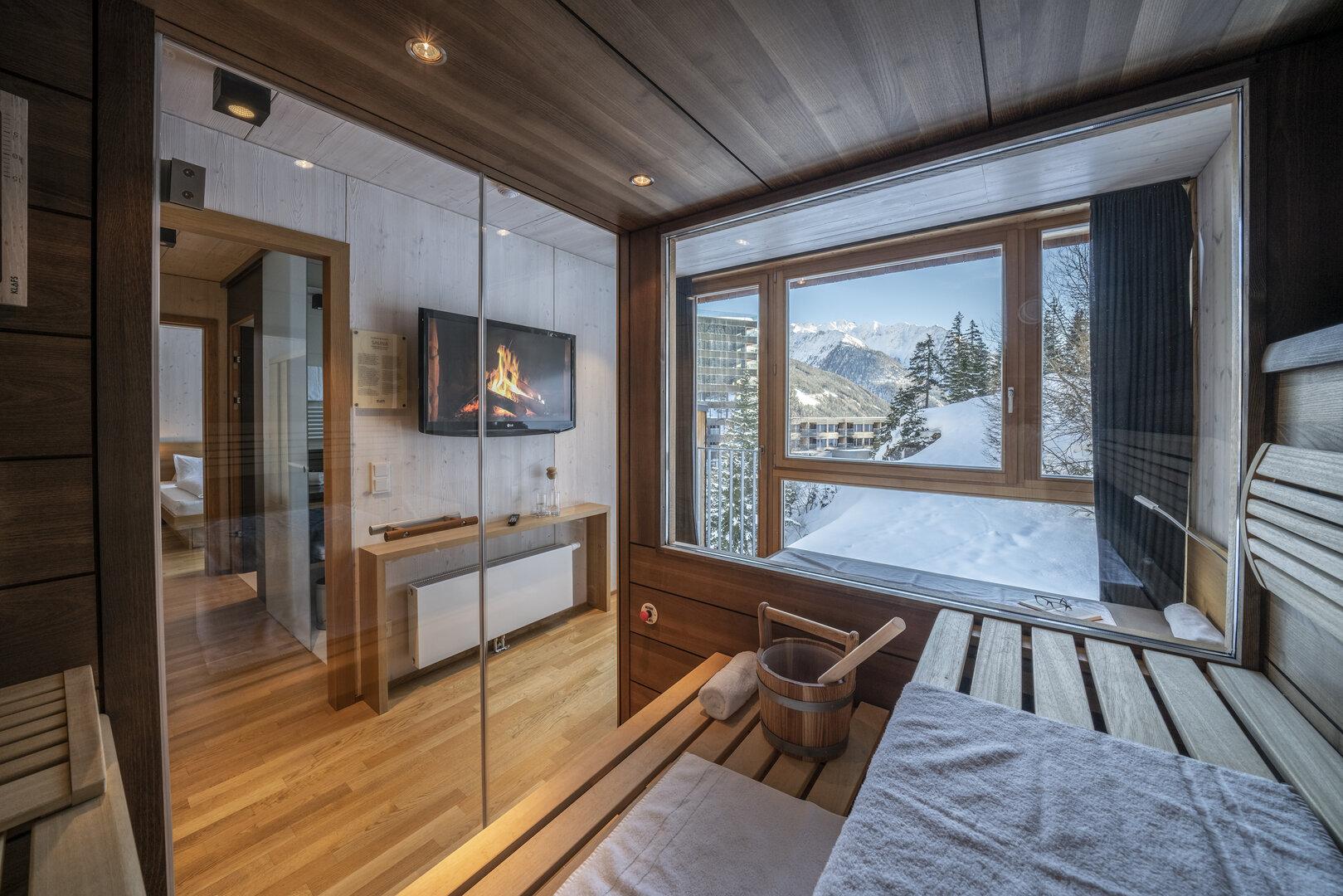 Nach dem Skifahren gibt`s Kaminfeuer, weiche Daybeds mit Blick in die umliegende Berglandschaft oder Dinner von Küchenchef Roland Gorgosilich
