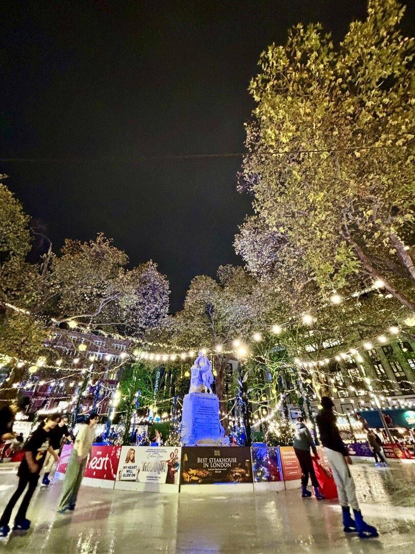 Erstmals gibt es auf diesem zentralen West-End-Platz nicht nur einen Weihnachtsmarkt, sondern auch eine Eisfläche.