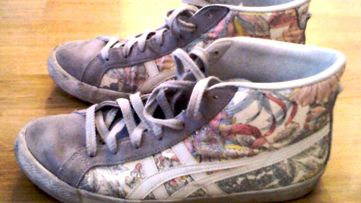 Dann traten SIE in mein Leben. Hellgraue, geblümte Hi-Tops. Onitsuka Tiger stand auf der Schachtel. Aha, interessant.