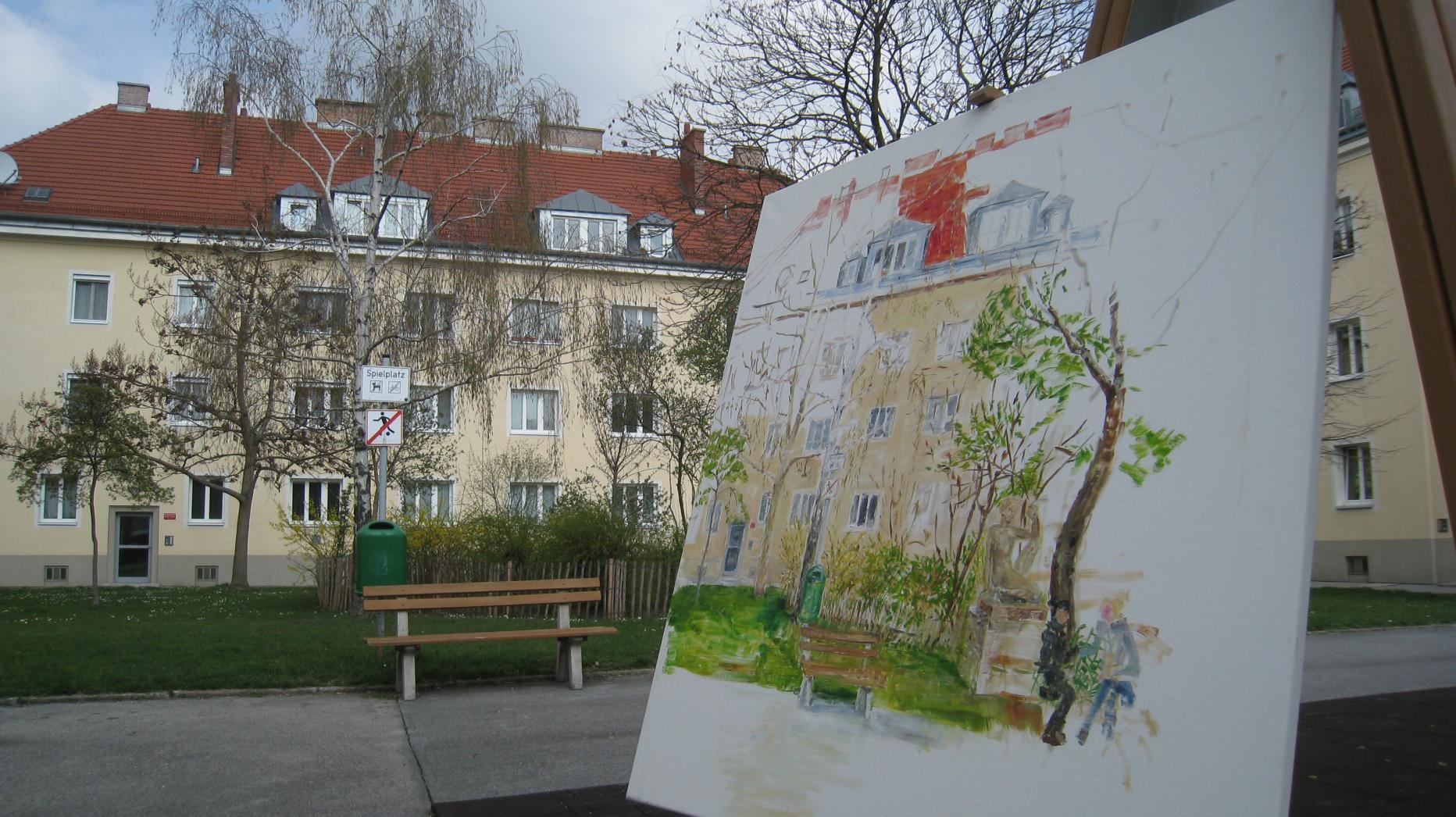 Sind auch die Gemälde von Andrea Marbach, die in meinem Gemeindebau gemalt hat.